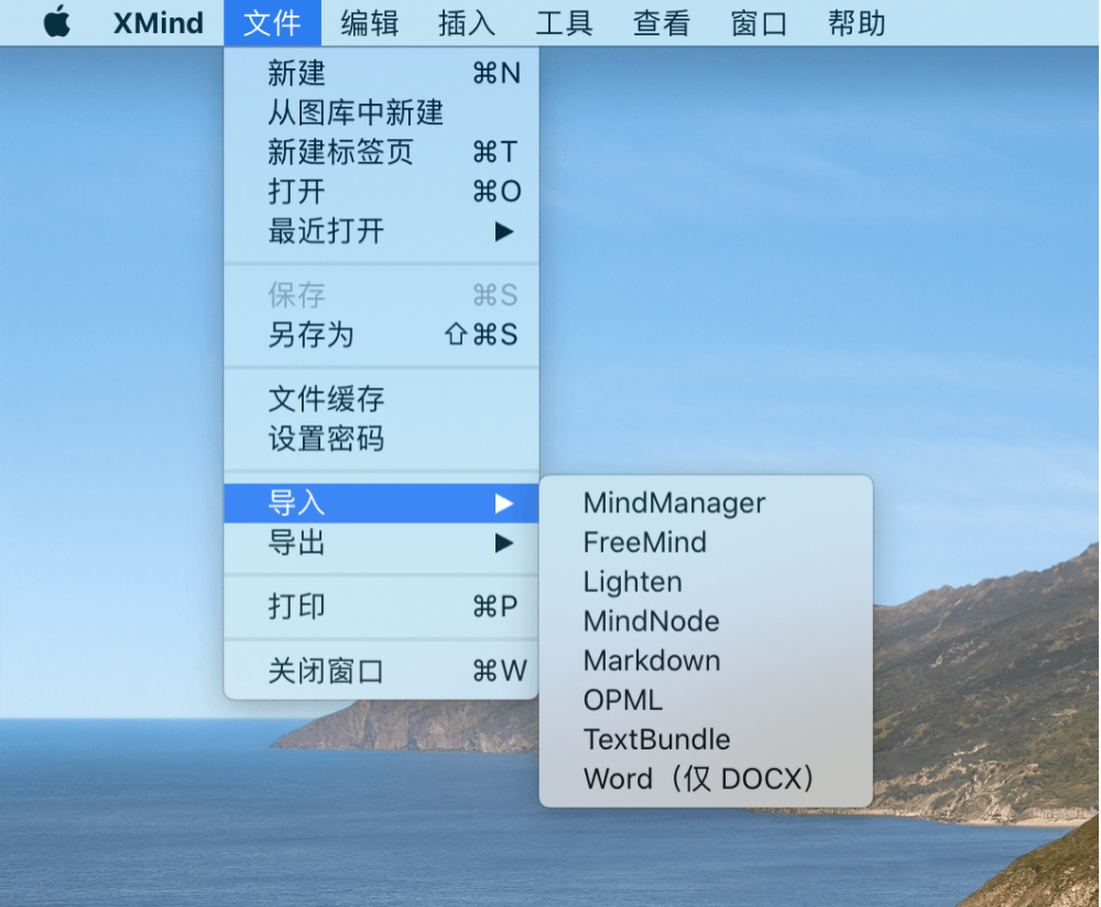 可将常见思维导图软件的文档导入至 XMind 2020 中,包括 MindNode、MindManager、Lighten 等。即使之前用的是其他导图软件,也不必担心格式兼容问题。