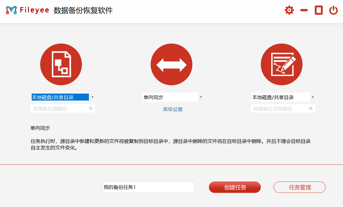 步骤3,点击中间“高级设置”,设置自动备份的相关参数,如果不设置软件会1个小时定时自动备份一次。然后填写备份任务的名称,点击“创建任务”,备份任务创建成功后会自动跳转至任务管理页面。