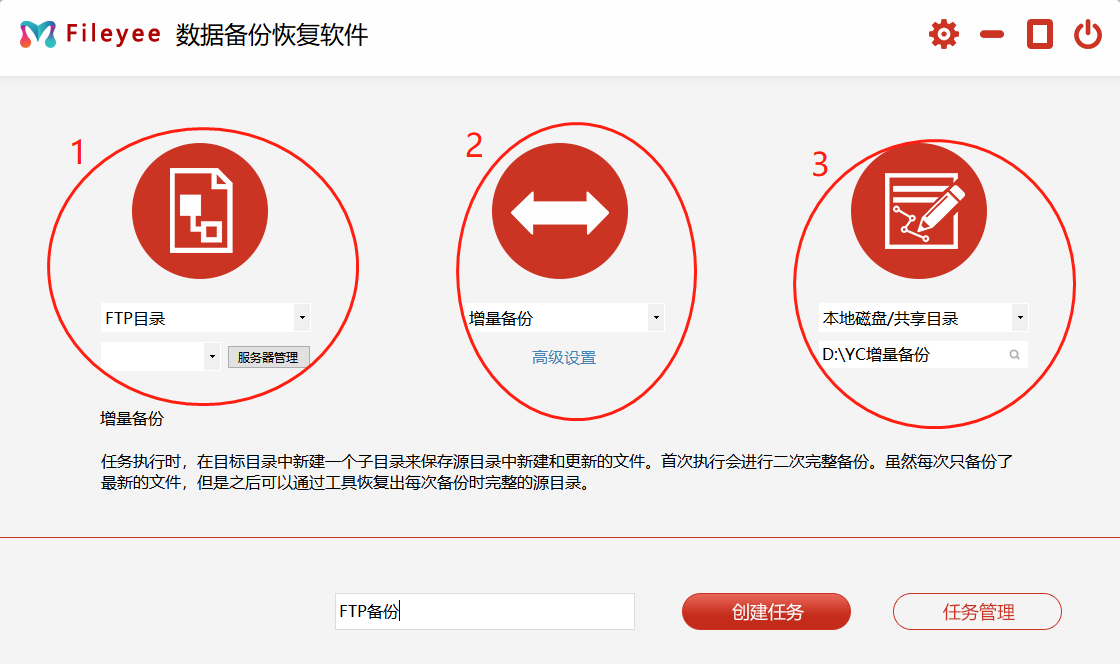 FileYee操作步骤更是简单,基本分2个步骤:创建任务、设备属性,就可以完成!定期自己去看看任务备份状态即可,完全不用操心,让我们备份工作事半功倍。