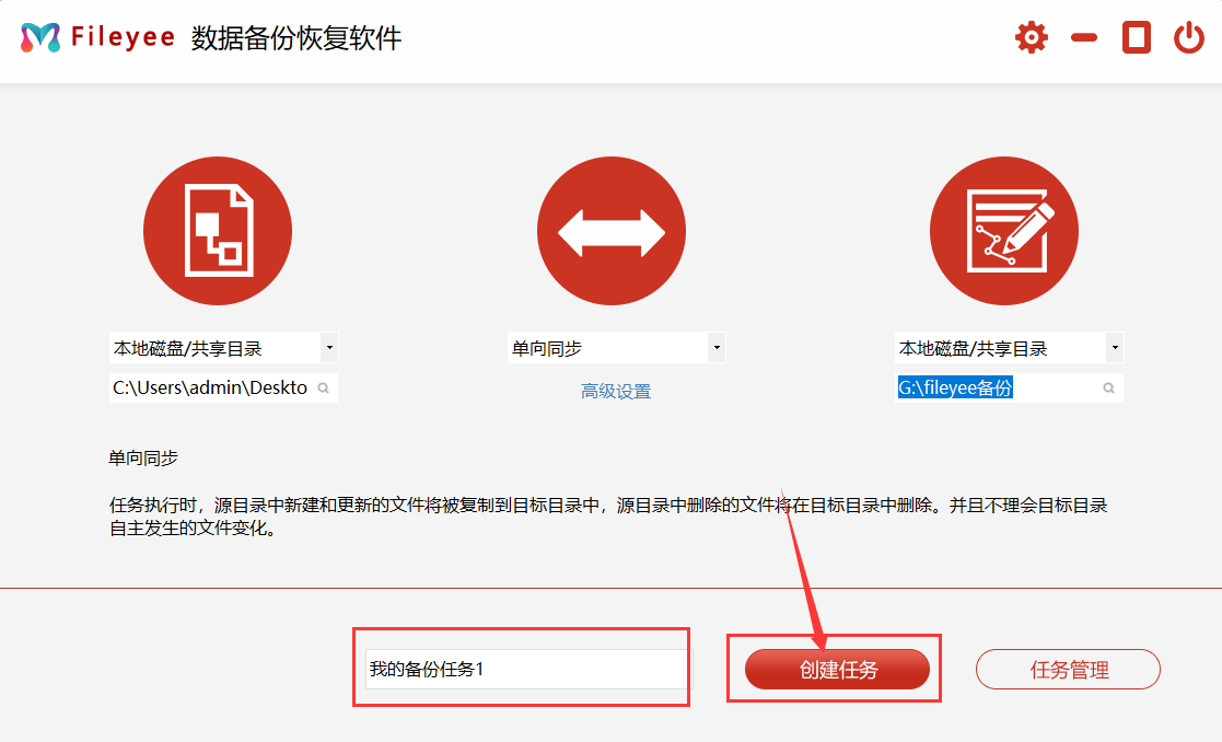 如何实现电脑文件的定时自动备份,可以使用专业的工具软件来帮我们完成,比如Fileyee数据备份恢复软件,可以将文件备份到电脑磁盘、U盘/移动硬盘、网盘和服务器,支持多种数据同步的放大。使用操作也是非常简单,只需选择好备份的源目录和目标目录,选好备份同步方式,设置数据自动备份的参数,建立任务,然后自动同步刷新即可完成第一次同步备份。后期会按照设置的参数定时自动备份电脑文件。