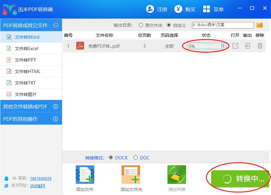 如果有多个文档需要同时转换,可以添加文件夹,如下所示可以增加多个文件,点击“开始转换”文档即可同时转换