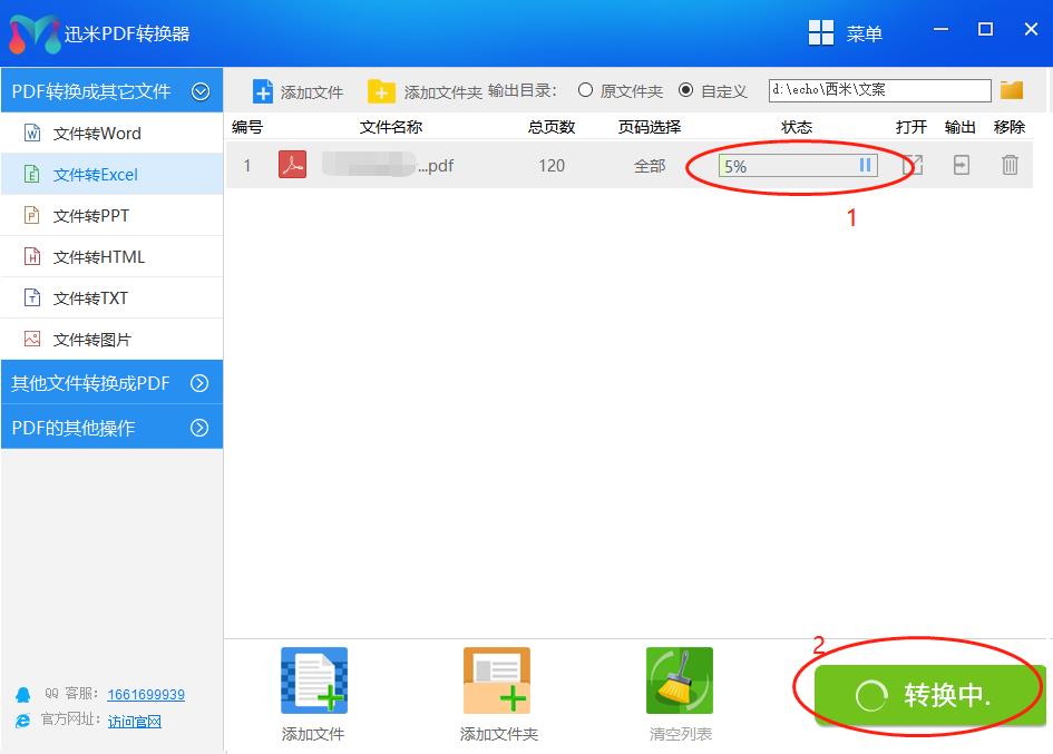 添加好PDF文档之后,点击开始转换,软件的状态就会更新成转成的百分比进度,底部绿色按钮文案更新成“转换中”如下图所示:
