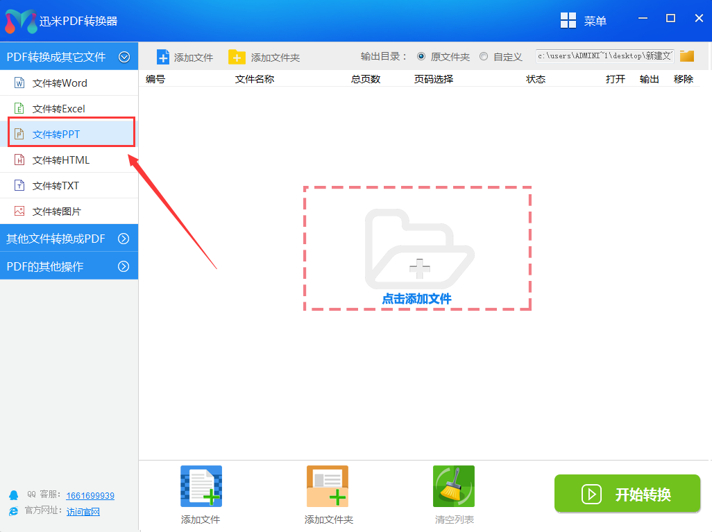 第一步,打开迅米PDF转换器,在软件左侧列表里面找到并点击【PDF转换成其他文件-文件转PPT】,从此处进行pdf转ppt操作。