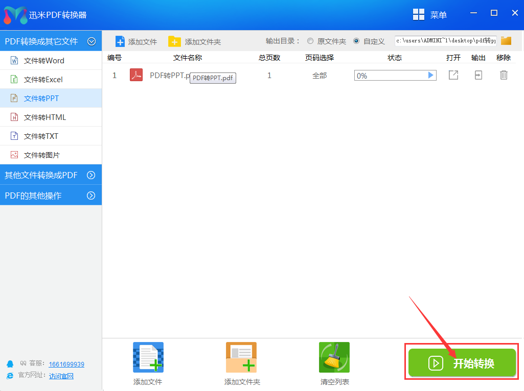 步骤1,打开迅米PDF转换器,在左侧列表中依次找到并点击【PDF转换成其它文件】-【文件转PPT】功能,从这里进行接下来的转换操作。