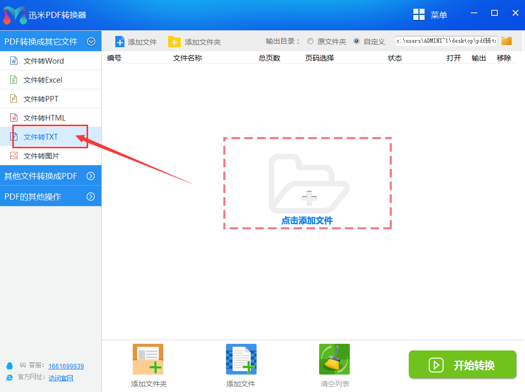 步骤1,打开安装好的迅米PDF转换器,从左边列表中找到并点击【文件转TXT】功能。