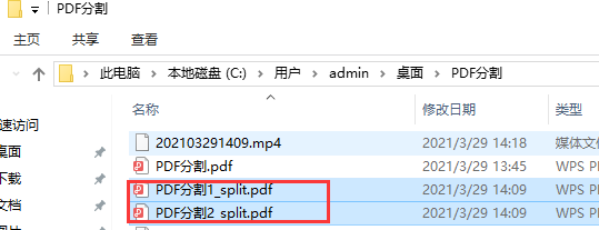 步骤5,如下图所示,从案例中可以看出PDF文件被拆分成了两个小的PDF文件。