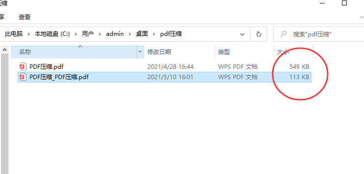 第5步:从我的事例中可以看到,549kb的PDF文件被成功的压缩到113kd,压缩效果明显。