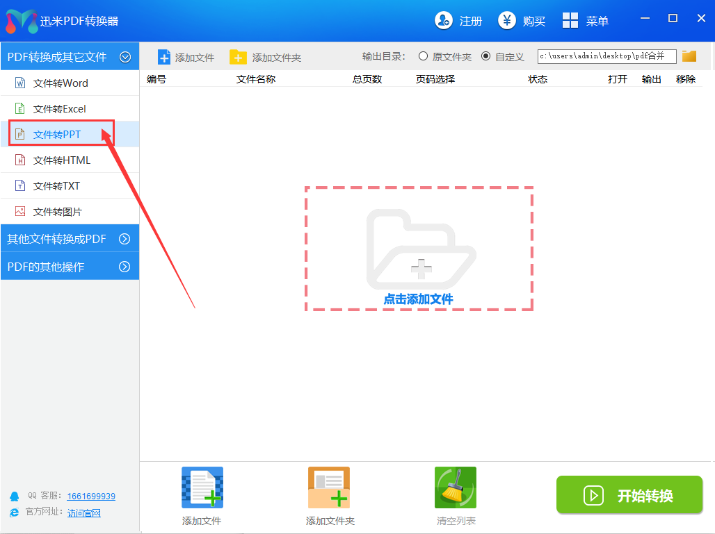 步骤1,打开安装好的迅米PDF转换器,因为我们要做的操作是PDF转换成PPT,所以我们点击左边列表中的【文件转PPT】功能,然后进入下一步的操作。