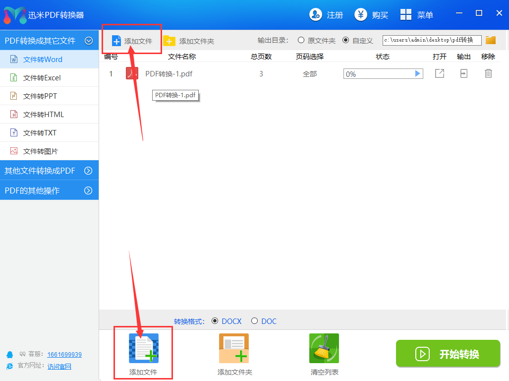 步骤1,打开安装好的迅米PDF转换器,找到左边功能列表中最上面的“文件转word”功能然后点击,进入下一步操作。