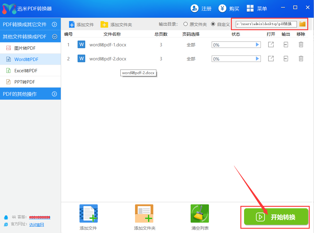 步骤3,软件右上角位置自定义设置转换后pdf文件的保存位置,方便我们查找。然后点击【开始转换】按钮,启动转换程序,我们只需等待即可。