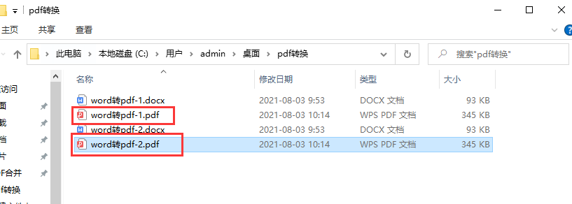 步骤5,从我的案例中可以看出,两个word文件被成功的转换成了pdf文件。