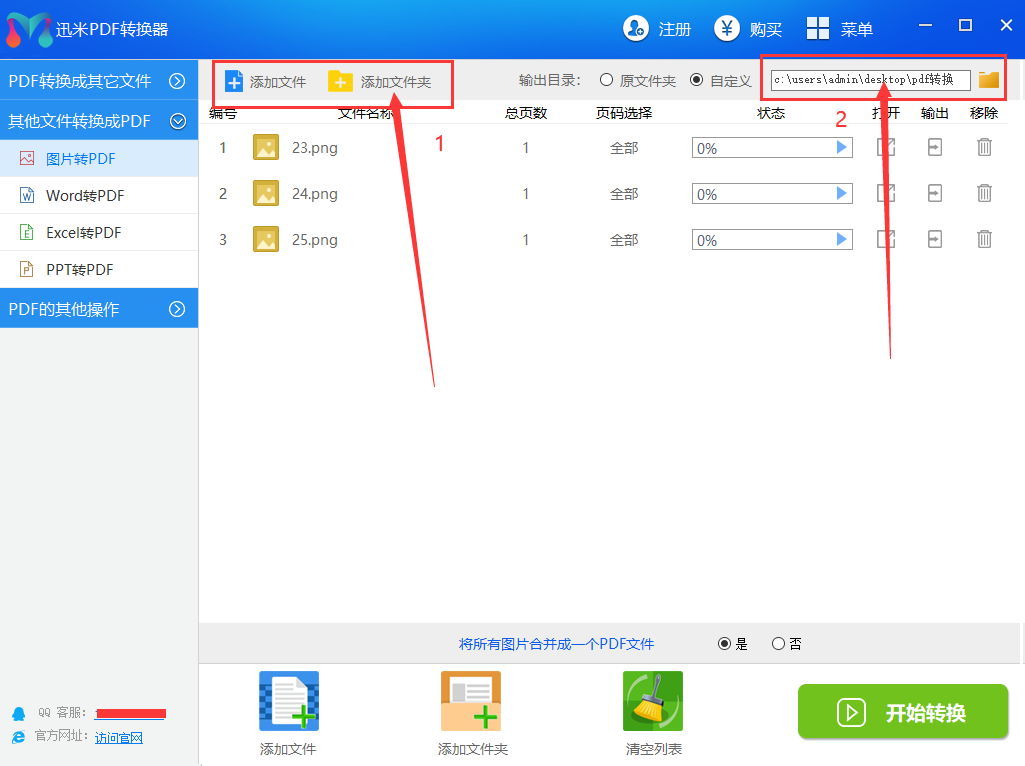 步骤2,将需要转换的PNG图片添加到软件当中,可以直接拖拽,或者点击“添加文件”或者“添加文件夹”来实现批量添加。图片添加好之后,可以调整一下文件的排序以及转换文件的保存目录。