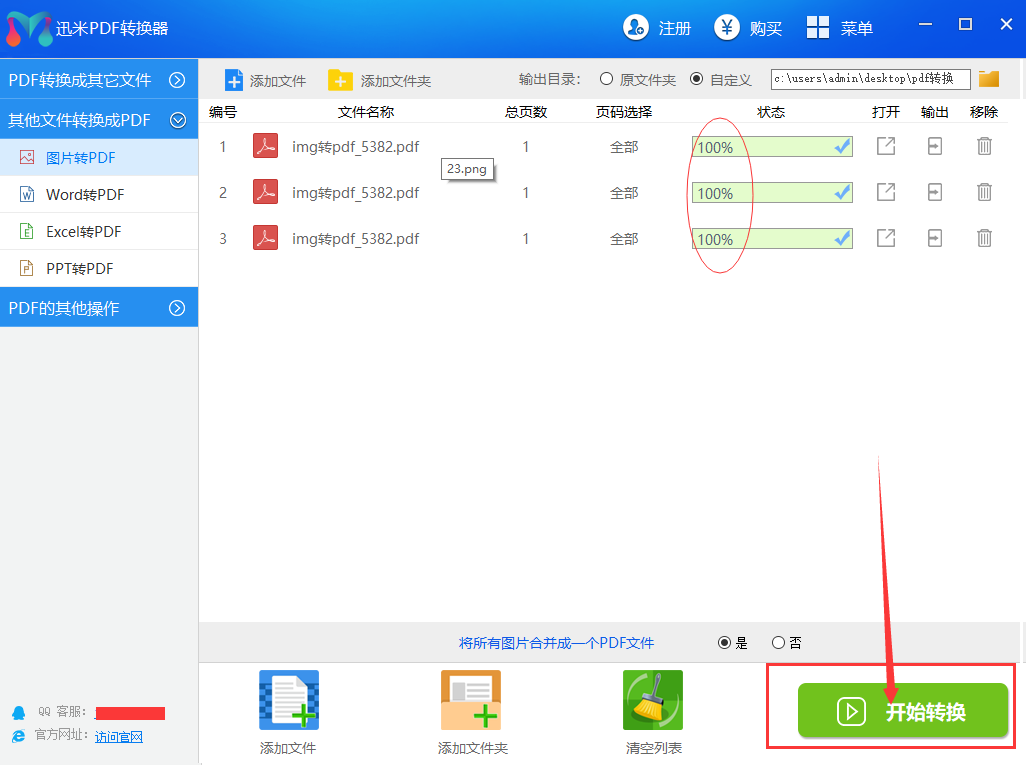 步骤3,在确认好没有其它设置需求的前提之下,可以点击软件右下角的“开始转换”按钮实现PNG图片转PDF了!等待转换完成之后,我们还可以预览一下转换出来的效果,确认是自己想要的效果之后即可点击“保存”了。
