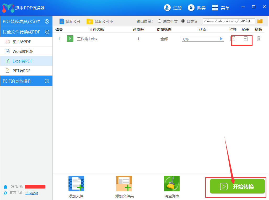 步骤一:下载迅米PDF转换器软件,安装到电脑之后双击打开。首先,我们可以选择对应的转换功能选项,也就是选择“其它文件转PDF”功能当中的“Excel转PDF”选项;