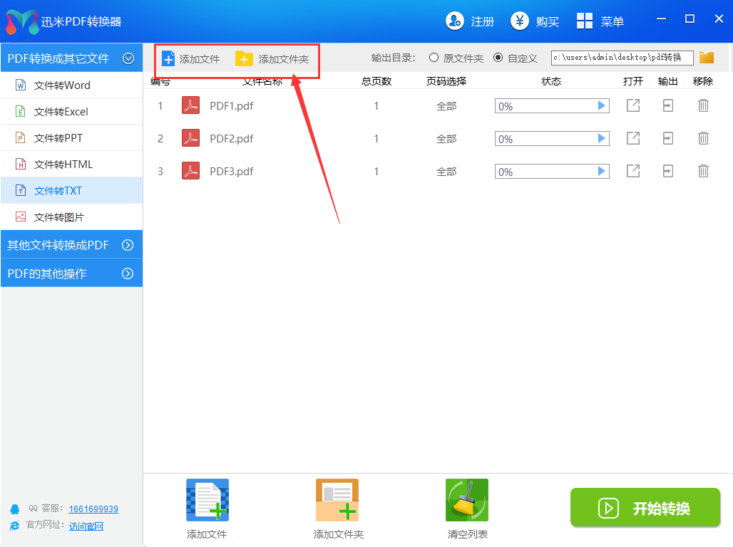 步骤3:文件添加好之后,可以设置一下转换文件的保存目录。在确认好没有其它设置需求的前提之下,点击软件右下角的“开始转换”按钮即可实现PDF转TXT的需求了。转换完成之后,可以先行预览,确认是自己想要的效果之后,点击“导出保存” 即可。