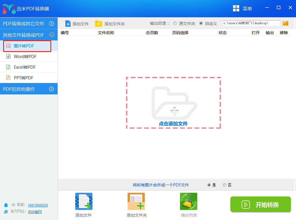 步骤1、下载并且安装迅米PDF转换器,并且打开软件,找到“其他文件转换成PDF-图片转PDF”,并点击进入。