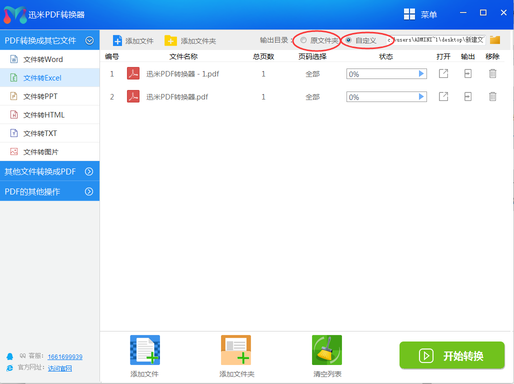步骤4、设置输出目录,就是转换后Excel文件的保存位置,有两种方法,分别是保存至原文件夹和自定义文件夹。