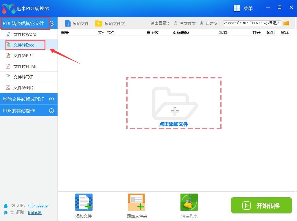 步骤2、打开迅米PDF转换器,从软件界面左边的列表中选择点击“PDF转换成其他文件-文件转Excel”功能。