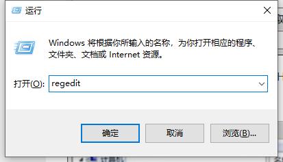 3.在运行程序汇总输入“regedit”,点击确认